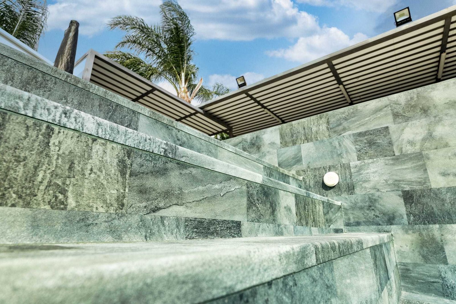 El diseño Stonetile Emerald refleja la belleza natural de las piedras preciosas, con tonos verdes intensos y texturas brillantes que evocan la riqueza de la naturaleza. Formado por baldosas inspiradas en piedra de 40×20 cm, este revestimiento transforma tu piscina en una joya lujosa, irradiando elegancia, frescura y vitalidad cada vez que la miras.
